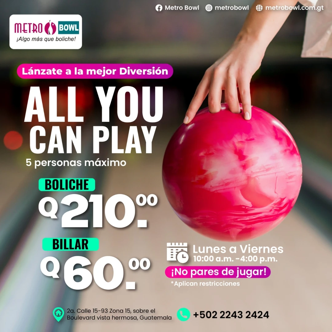 Metroboliche S.A fue fundada en Guatemala en 1995 con el objetivo de ofrecer una opción de entretenimiento sano, familiar y diferente al público guatemalteco. Actualmente cuenta con las más vanguardistas instalaciones de boliche en Guatemala, además de un actualizado centro de diversión y servicios para todas las edades.